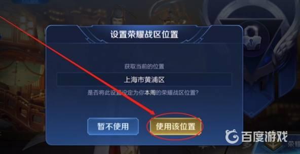 3.然后点击右边的位置按钮,王者荣耀就会根据你所在的位置显示你所在的战区。