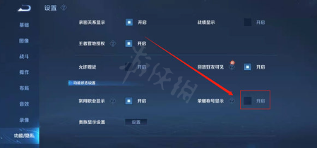 5、关闭荣耀称号显示,即可隐藏荣耀战区。