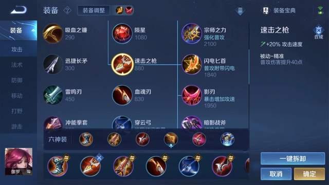 目前发育路胜率一哥(狄仁杰)的推荐出装是:影忍之足、闪电匕首、末世、寒霜袭侵、暴烈之甲、血魔之怒。