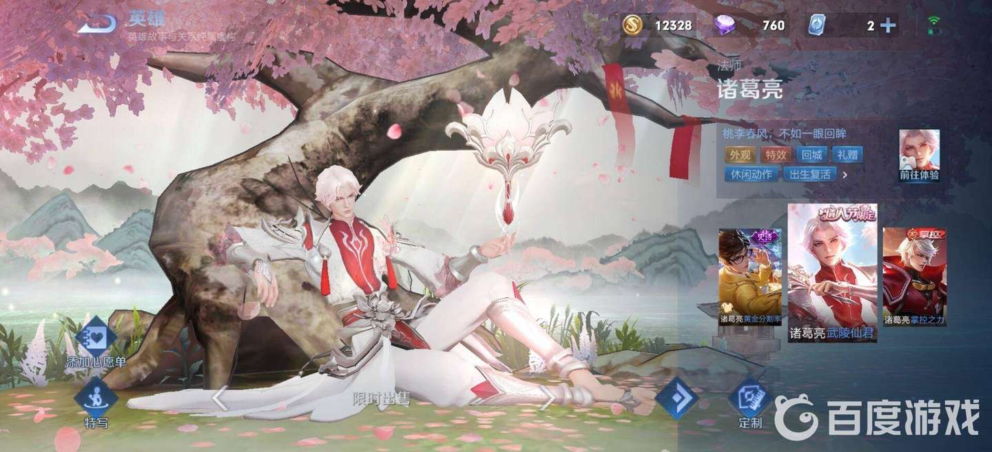 4、武陵仙君。武陵仙君是王者荣耀英雄诸葛亮的情人节限定皮肤,这是一款传说品质的皮肤,不管是封面、人物模型都是非常的俊美,人物特效和回城特效都采用的是桃花的元素