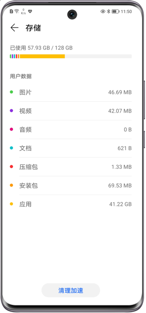 4 清理手机/平板存储空间 请检查手机/平板剩余存储空间,如果存储空间低于10%,系统性能会急剧下降,建议您尽可能保证设备存储空间多一些,建议保留20%空间。