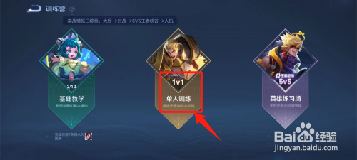 4、接着,游戏玩家进入单人训练模式后,选择英雄点击开始;