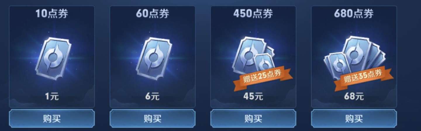 4、充值荣耀币