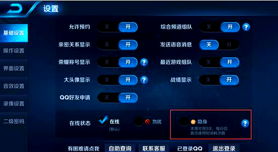 在王者荣耀中,召唤师们拥有一个全新的隐私保护选项。只需简单几步操作,即可轻松切换至隐身状态。具体路径为:“设置”->“基础设置”->“在线状态”,在这里,你可以自由选择是否希望在游戏中保持隐身。