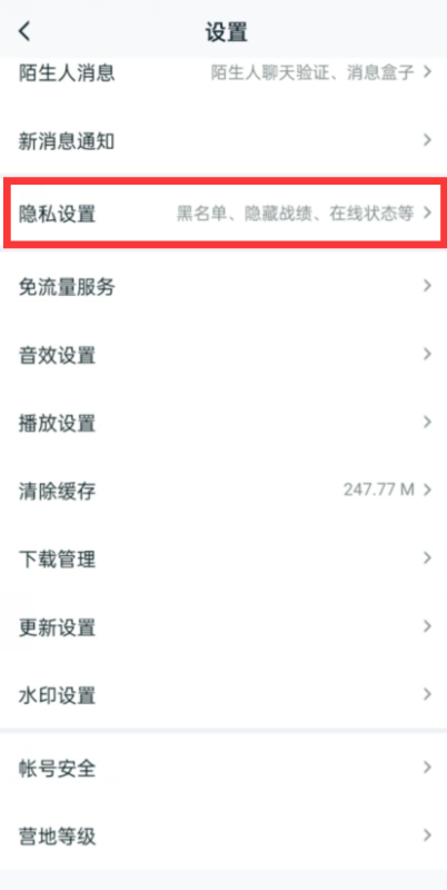 接着,点击隐私设置以进入相应的界面。