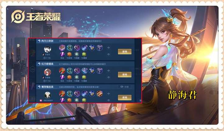三套出装定位不同,「肉刀半肉流」抗伤能力最强,但前期刷野速度较慢;「红刀半肉流」最为平衡,但比较依赖队友的发挥;「红刀输出流」伤害最高,但容错率较低,大家可以根据自己的喜好来选择对应的出装。