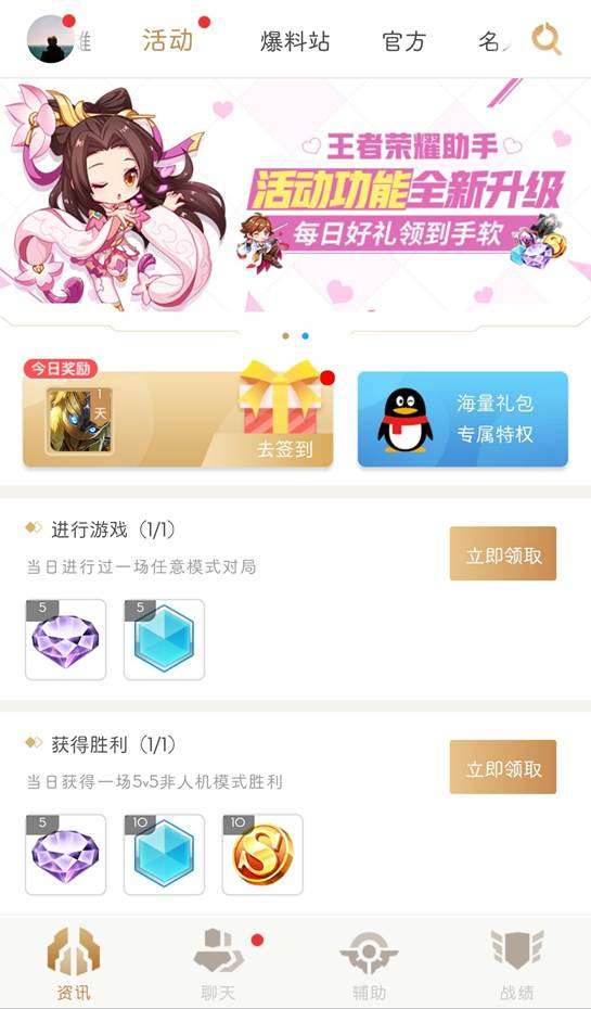 打开王者荣耀助手,找到上面的活动专栏,里面每天都有任务,完成即可领取铭文碎片,任务难度不大,玩家能够轻松完成。