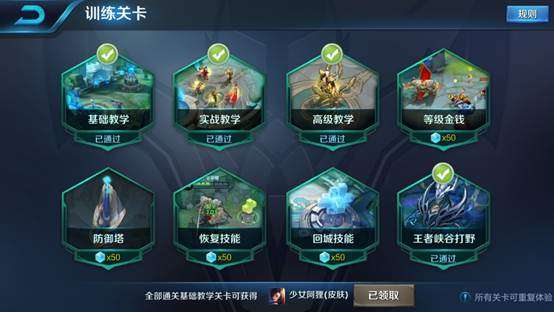 在训练营里,有许多的新手教学任务,完成它们就可以得到大量的铭文碎片和一些皮肤碎片,全部完成还会获得妲己的一款皮肤,实在是新手的福利啊。