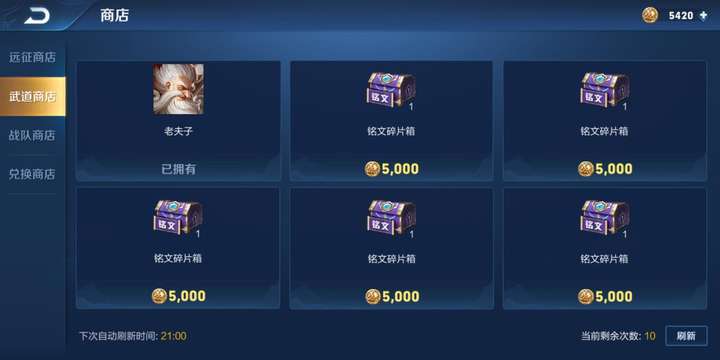 远征商店,我们通过远征币可以购买箱子,每天可以获得360远征币,一共需要14天便可兑换一个500铭文碎片的箱。