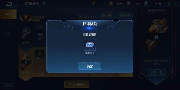 例如战令的活动,免费的升级至59级,一共可以领取1600的铭文碎片,期间还可以领取一张免费的铭文周卡,相当于是賺了一个五级铭文。