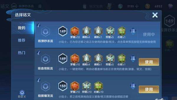 玩家可以在游戏中配置多套铭文,分别进行保存,通过选择不同的铭文页查看单页铭文总等级。