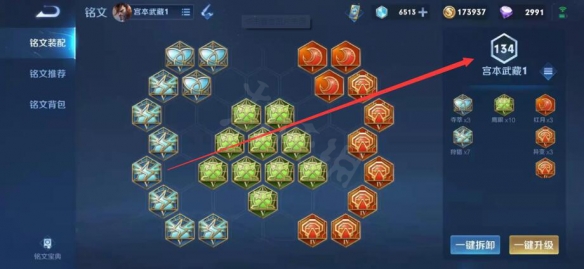 这里在右侧就可以看到当前英雄页面的铭文等级了。