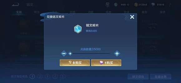 铭文可以使用金币和钻石购买,8金币或者1钻石可以兑换两个铭文,金币钻石多的话,铭文基本瞬间就可以升到150级。