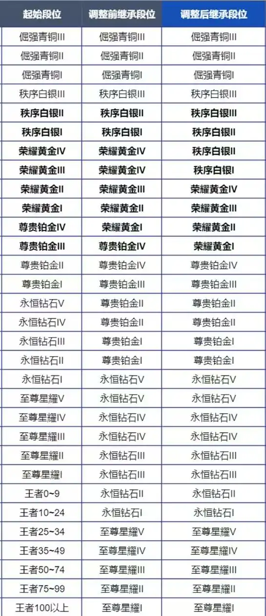 - **铂金及以下**:黄金段位仅微调小段,白银和青铜完全保持原位。