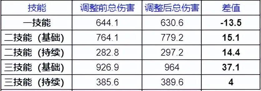 调整前持续伤害282.8.调整后297.2