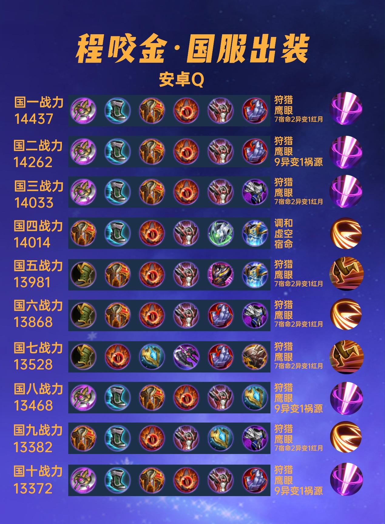 先做一个小统计,40位国服程咬金中隐藏玩家有3位,20位带惩击的,理论上来讲应该都是边惩路线,应该没有人拿程咬金去打野吧~