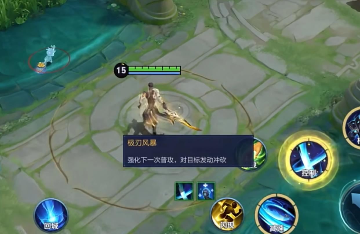 我们可以先使用二技能,获得一个强化普攻,然后等一下再使用。这就是铠的存刀了。我们具体怎么操作呢?可以先使用二技能存一刀,等待二技能CD,等二技能的冷却时间快结束的时候,我们就瞬间打出强化普攻,然后再接一次二技能。又可以再次打出一次强化普攻,这样我们就是可以直接打出A2A了,可以打出两次强化普攻了,同时,我们也可以利用存刀,普攻野怪进行位移,然后达到快速赶路的目的。