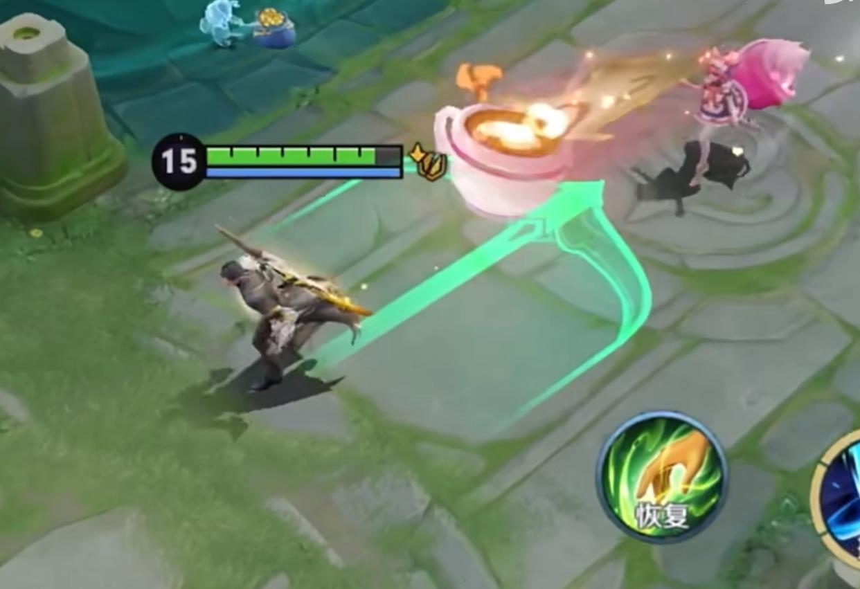 铠的一技能就是向前扔出一个飞镖,当飞镖弹射完以后,就会飞回到自己的手里,并且可以回复一定的生命值。这里需要注意下,必须是我们接到飞镖以后,才是可以恢复生命值。
