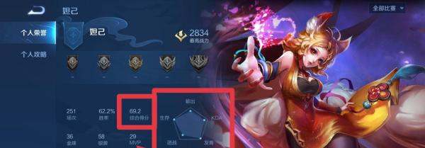 查看方式:打开王者荣耀,进入大厅后点击左上方头像,进入“我的主页”后点击“英雄”,选择具体英雄(如妲己)即可查看综合评分。