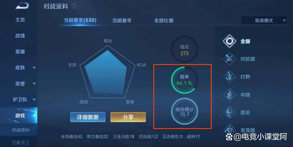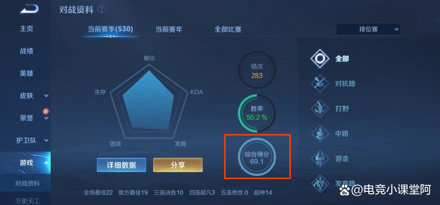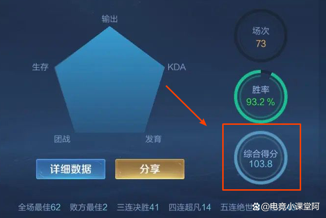 看一个玩家的王者真实水平,不同的玩家有着不同的看法,有的认为看历史最高段位就行,有些认为看最高战力的英雄就行,有些则认为看历史最高巅峰分数就行,其实在课代表看来,最能代表玩家真实实力的,就是当前赛季的综合评分,70以下不及格,90以上很难得。