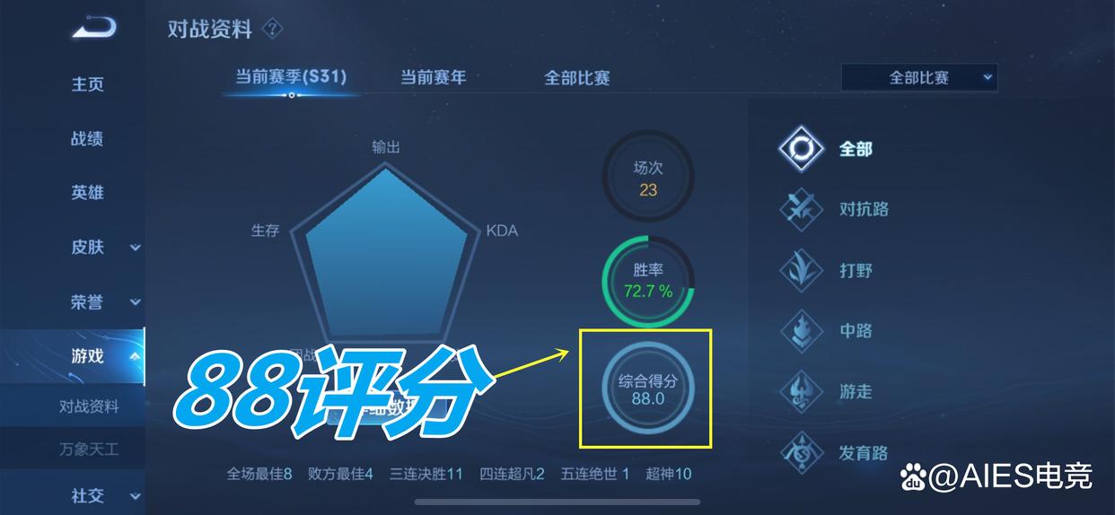 7、90分以上:一般只有大神开小号虐菜,才能打到这个数据,属于把把都是乱杀,把对面吊着打战绩非常夸张的那种,胜率更是在70%以上,只有遇到好几个坑逼队友才会输。