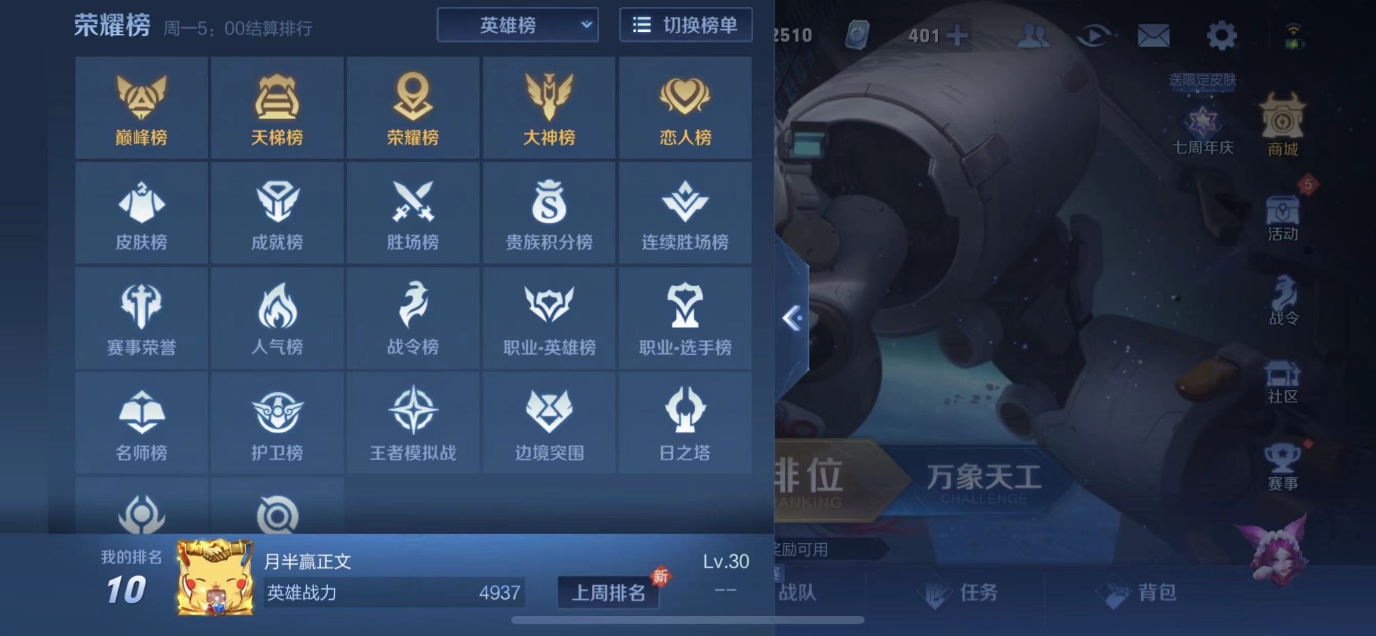 就可以查看你目前所在战区你英雄的排行的,每个英雄都能查看。大家根据排行榜中的分数,以及你英雄的分数,就可以有针对性的游戏,避免赢了一局战力不增加的情况发生。