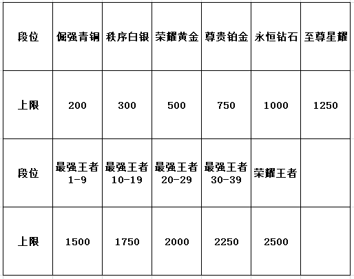 然后是排位表现战力,这个战力的上限跟你的段位有关,提升方式便是排位赛使用你的英雄获胜,上限数值具体见下表: