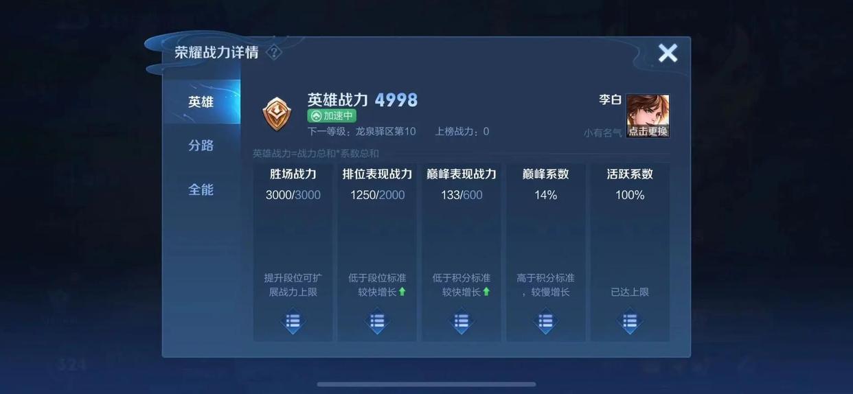 英雄战力是有上限的,但上限是可以根据段位和巅峰赛突破的,当然巅峰不同分数战力上限也是不同的。