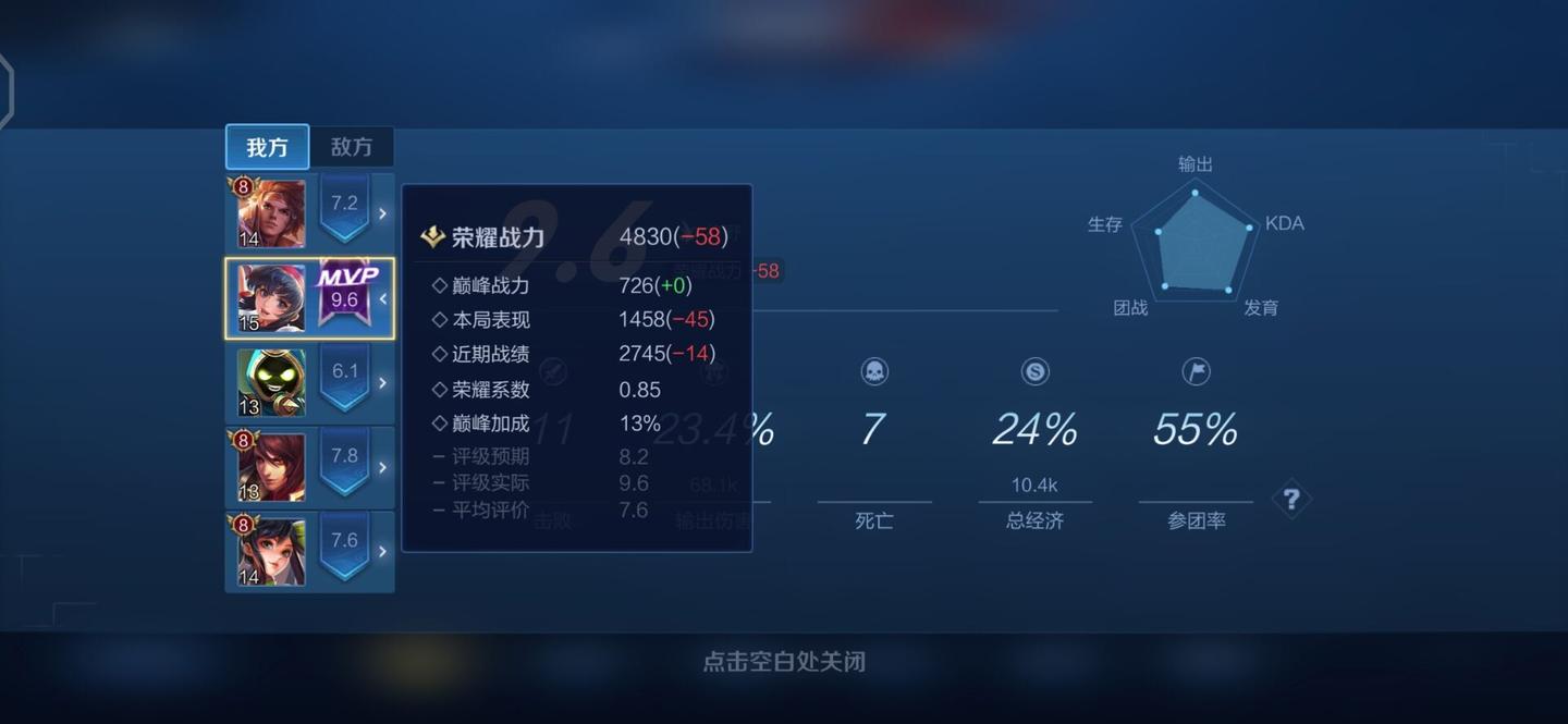 单局加分=(本局评分-历史45场中最低评分)*段位系数*巅峰系数