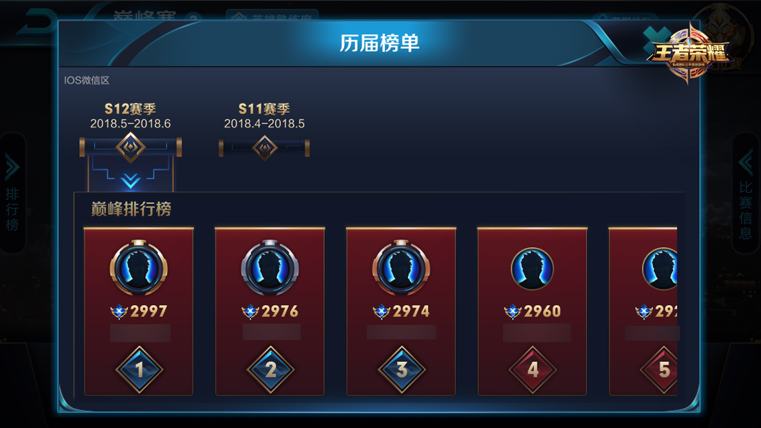 ▌新增巅峰赛历届榜单