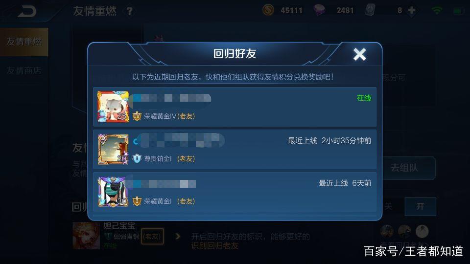 王者荣耀怎么查看回归好友