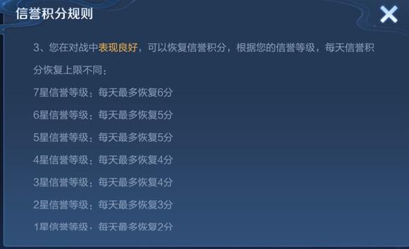 - **时间积累**:不同信誉等级每日可恢复的信誉积分不同。