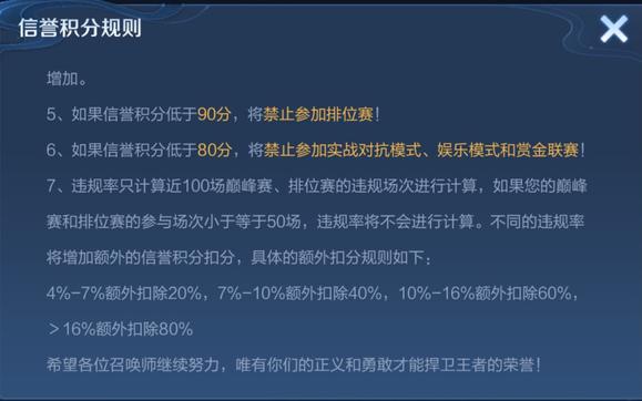 王者荣耀游戏中如果信誉积分低于80分,将禁止参加实战对抗模式、娱乐模式和赏金联赛。