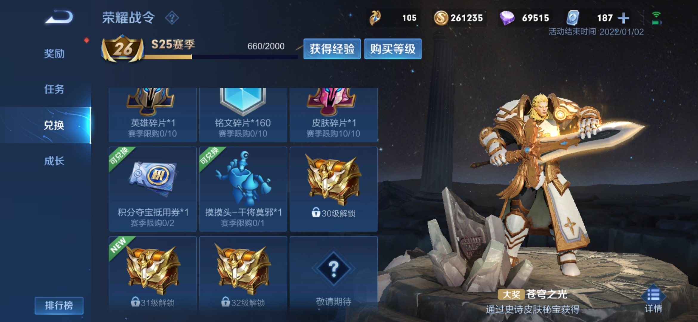 荣耀水晶可用来兑换荣耀典藏皮肤和武则天英雄。
