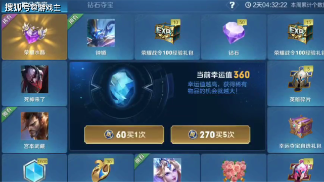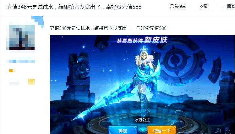 也就是说即便一直不出水晶,只要你抽到361次,那么幸运值爆满刷新,与此同时给你一个荣耀水晶。也就是说,荣耀水晶最起码还是可以获得,但是冰冠公主这个皮肤如果抽不到的话,就永远拿不到,永远只能用体验卡试玩。
