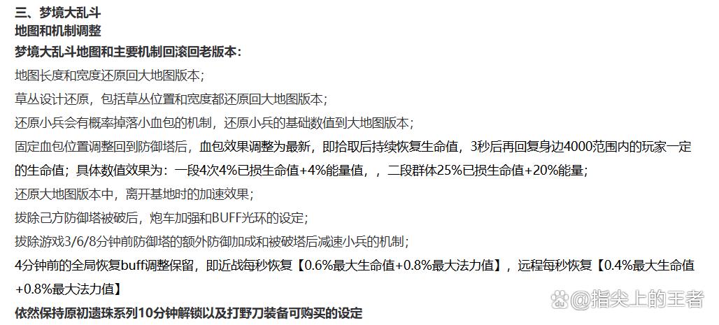 没想到,刚没上线多久,这就要准备回退了,可以看上图内容,大部分的设定都要回滚到重做前的梦境乱斗,话说你觉得现在的梦境乱斗好玩,还是上个版本的好玩呢?