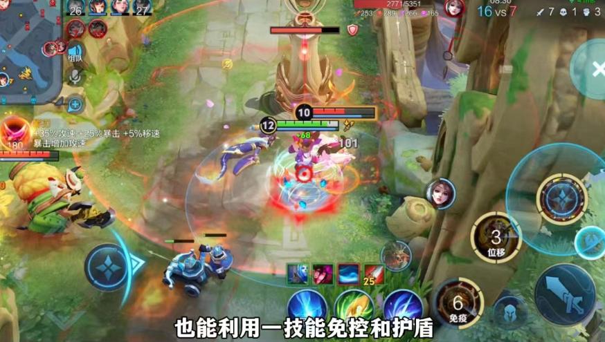 再看三角跳,用2技能跳过第一个目标的时候,可以控制左手的轮盘方向,控制第二段跳的方向,我们可以利用野怪或者小兵打出三角跳的操作,用来追击远处的敌人!需要注意的是,不论是那种跳棍,如果感觉进场输出比较危险,最好在进场前释放1技能,这样即使受到伤害和控制,也能利用1技能免控和护盾抵挡大量伤害,可以选择继续攻击目标或者撤退!