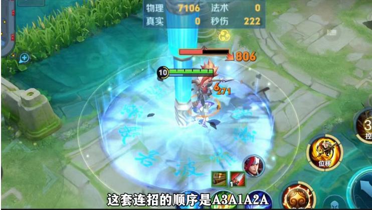 猴子的3技能是击飞范围内的敌人1秒,并且范围内的敌人获得3层印记,猴子的普攻命中带有印记的敌人,会造成额外的伤害。我们可以先存一个2技能,用2技能的强化普攻来到目标身边,然后3技能起手接一二技能,这样就可以打出1秒4棍的效果,这套连招的顺序是A3A1A2A,可以瞬间把猴子的伤害打满。