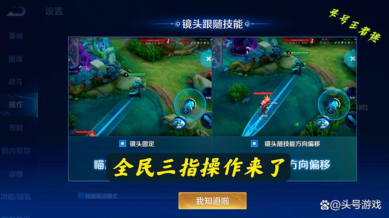 不过,随着S29赛季的开启,现在就算是普通玩家也可以使用三指操作,因为这一次版本更新的时候,王者荣耀优化了镜头跟随技能的功能,现在只需要我们释放一些距离比较长的技能,都可以自动把镜头拉远,而且现在没有那种镜头晃动感,非常的丝滑,只需要我们在设置中打开镜头跟随技能这个功能,就可以使用,并且现在所有的英雄都适配了这个功能,所以大家可以去尝试一下。