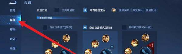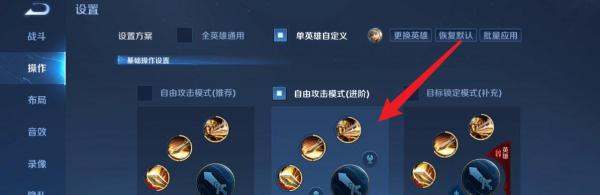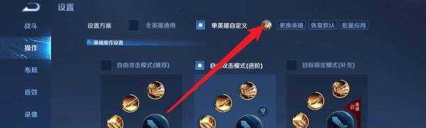 设置英雄:在操作设置界面中,右上方可以设置英雄,点击该区域进行英雄选择。