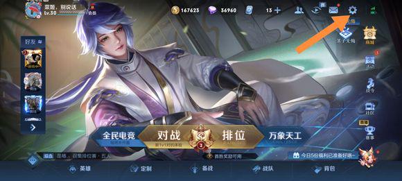 王者荣耀按键太靠中间王者荣耀按键布局怎么调整首先,进入游戏主界面,找到右上角的设置图标进行点击。接着,从设置菜单中选择左侧的布局设……