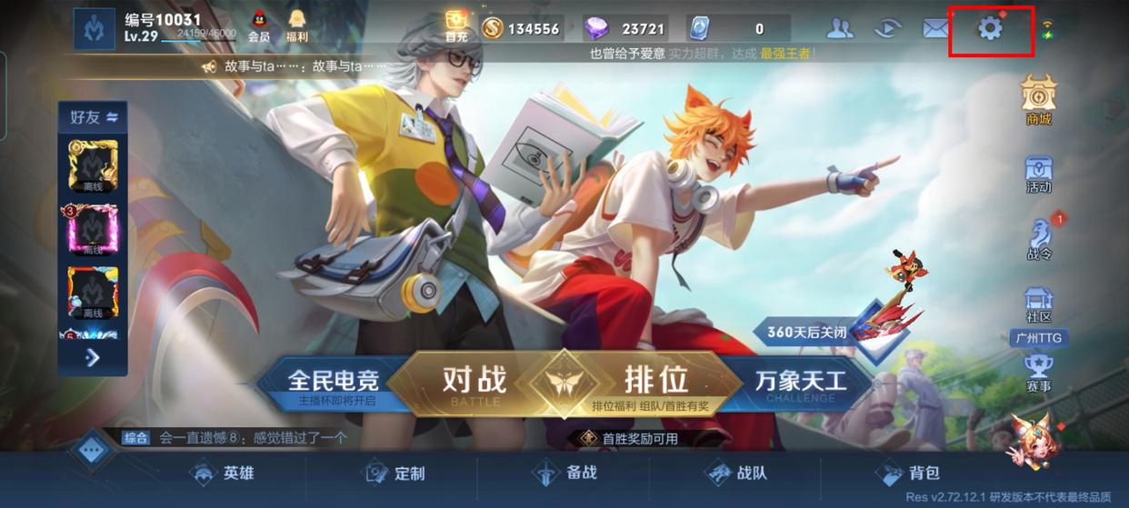 1.打开王者荣耀游戏右上角的“设置”