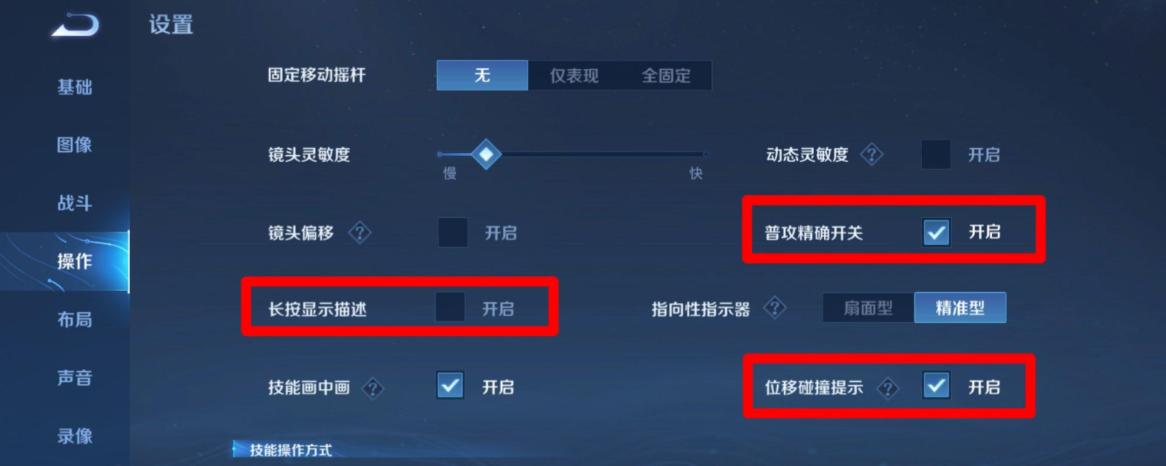 入门级玩法靠镜头偏移设置。在操作设置里打开镜头跟随技能方向偏移,玩干将、王昭君、西施这类长手英雄时,释放技能的瞬间,镜头会自动跟着技能方向移动,相当于自带拉三指效果,不用手动调整就能看到技能落点的视野,技能命中率至少提升一半。
