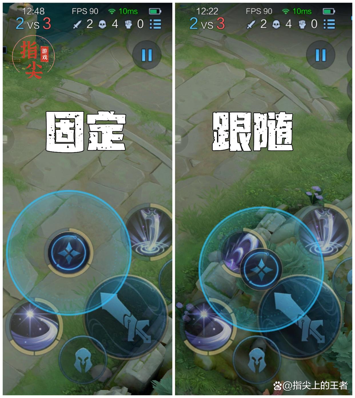 固定的,是以技能为中心,按到了技能边缘,那么位移技能会以技能图标为中心为起点,选择了跟随,那么就会以手指按下的位置为中心,哪个更精准,不言而喻,对于点放的技能,如妲己的3技能无所谓,但2技能这种需要拖动方向选择英雄的情况下,影响可就大了。