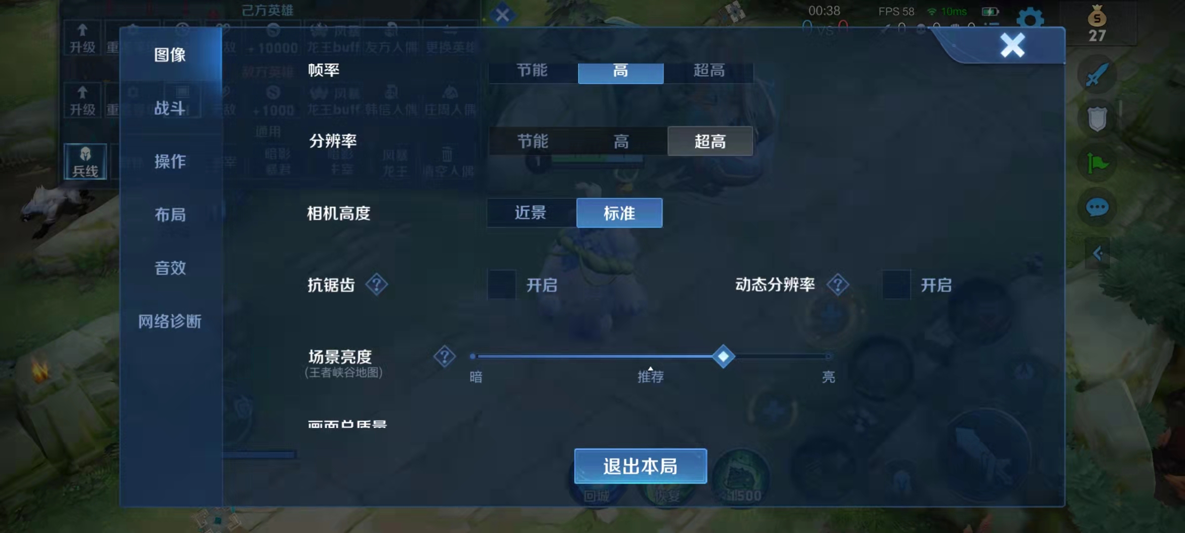 另外,场景亮度也会在一定程度上影响游戏对局。比如当你看不见敌方鬼谷子,或者看不清关羽的马眼时,调整场景亮度能够解决这个问题。