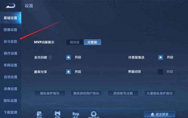 在设置界面中,玩家需要下滑找到“战斗信息”选项,并点击进入。这一步骤是设置选英雄顺序的关键一步。
