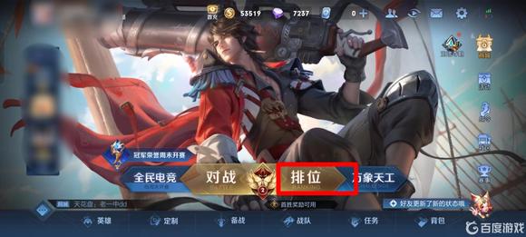 1、首先打开王者荣耀,点击进入排位页面,在排位页面右下角,点击进入常用英雄设置页面。