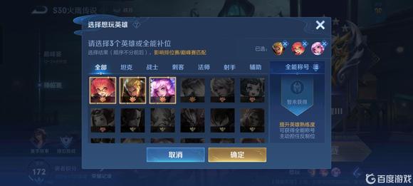 2、其次设置常用英雄,点击确定。完成设置后,再点击开始游戏。