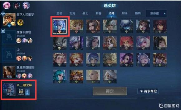2.当没有预选英雄时或者预选英雄提前被抢时系统会自动选择玩家设置的三个常用英雄,会根据阵容缺少的位置在三个英雄中选择,当既没有预选英雄,常用英雄又没有符合阵容的选择时,系统最后便会从玩家所有英雄中选择熟练度最高且是阵容缺少的位置选择一个英雄。