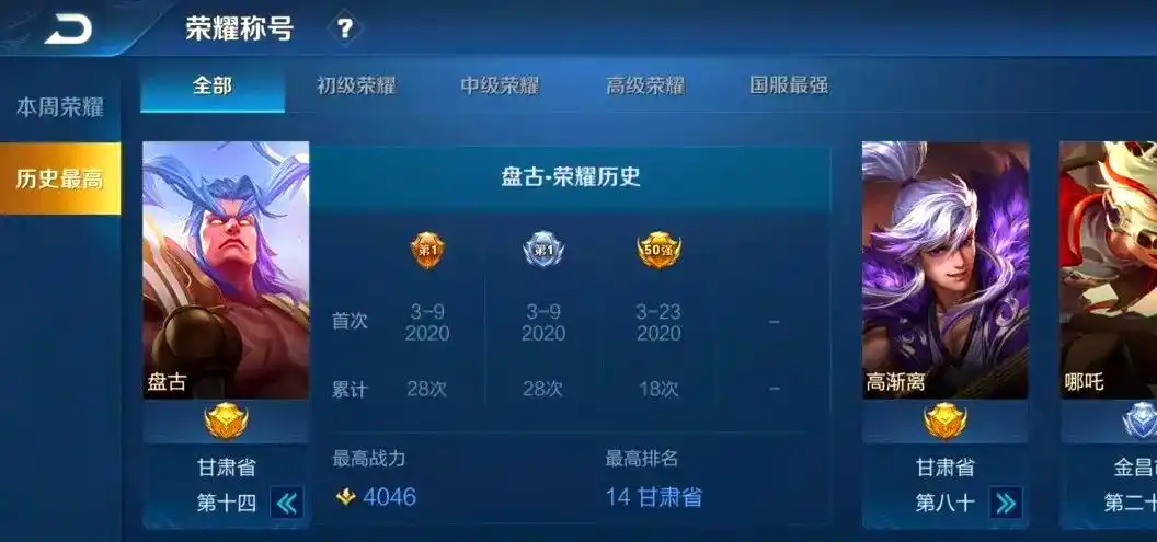 王者荣耀中,全国各个县市省都设有排名。在每局游戏开始前的选英雄环节,读条界面会显示对应铜银金三个等级的奖牌。